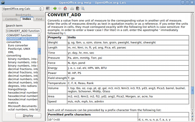 Calc convert_addThe CONVERT_ADD spreadsheet function (known as CONVERT in other applications) has many more conversion factors implemented, as defined in OASIS ODFF/OpenFormula.